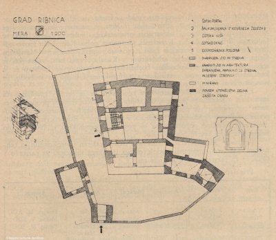 Prezentiran je tloris palacija in adaptiran vhodni stolp prvotnega gradu. Druga obstoječa arhitektura (z zbirko domače obrti) je delo arhitekta Cirila Tavčarja (1958/59). Na dvorišču je park kulturnikov. |